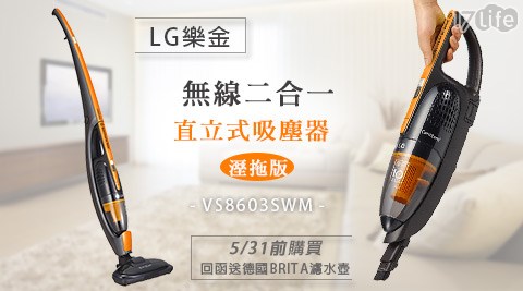 只要9,999元(含運)即可享有【LG樂金】原價19,900元無線二合一直立式吸塵器1台(溼拖版)(VS8603SWM)(亮眼橘),享全機2年保固+馬達10年保固,2017/5/31前購買回函兌換送德國BRITA 3.5L濾水壺(含濾心)?